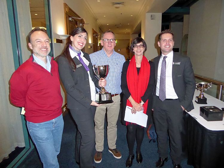 L-R Ben Thompson, Alessandra Paduos, Neil Ewart, Kim Frazer and Daniel Wilkinson. The VCC is very grateful for the sponsorship of Quest Apartments on StKilda Road.
