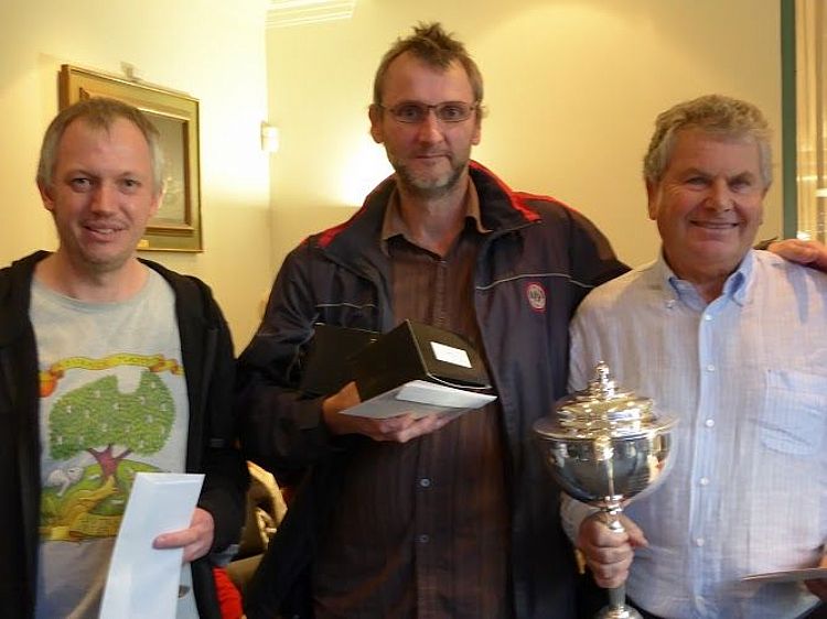 Trevor Haley & Lanny Chan (Runners Up Restricted Pairs) with Tournament Organiser Kim Frazer