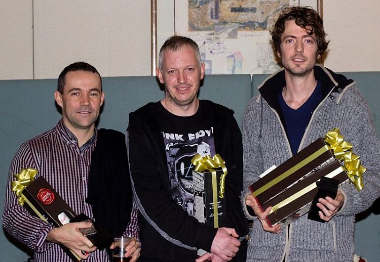 Restricted Pairs Runners Up David Hollands and Robert Jacobs with James Ward of Pianola