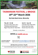 TASMANIAN FESTIVAL of BRIDGE 19th-22nd March 2026