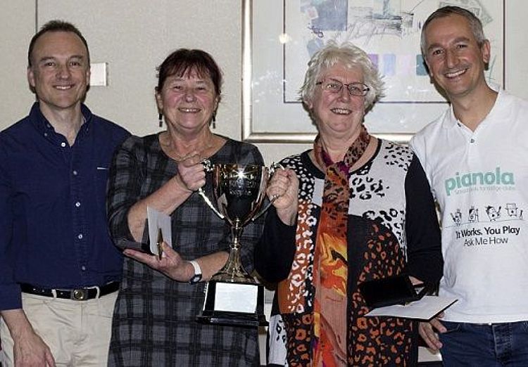 Restricted Pairs Runners Up David Hollands and Robert Jacobs with James Ward of Pianola