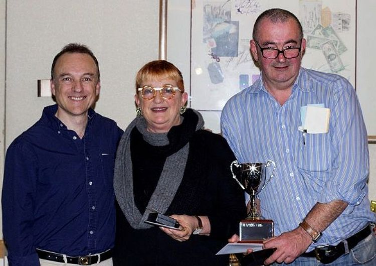 Frank Power Trophy - Under 200MP Champions Susie Groves and Alastair Lowe with Ben Thompson (far left)